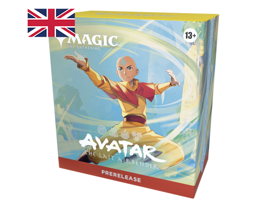 CONTENUTO: 1 carta promo rara o mitica foil, 1 Booster Aang contenente 13 carte a tema bianco tra cui una rara o mitica foil, 5 Play Booster di