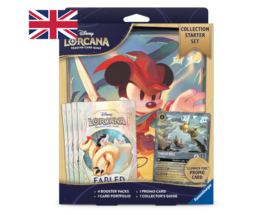 - CONTENUTO: 1 Binder a tema MIckey Mouse (12 tasche per foglio), 4 Booster con 12 carte del set Fabled di Lorcana in ogni busta, 1 carta promo Tinker Bell - Giant Fairy Glimmer Foil.