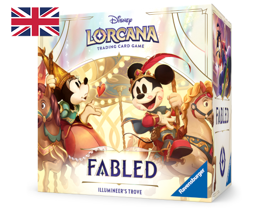 - CONTENUTO: 8 Booster con 12 carte del set Fabled di Lorcana in ogni busta, 6 dadi, 6 divisori ed un contatore per la lore