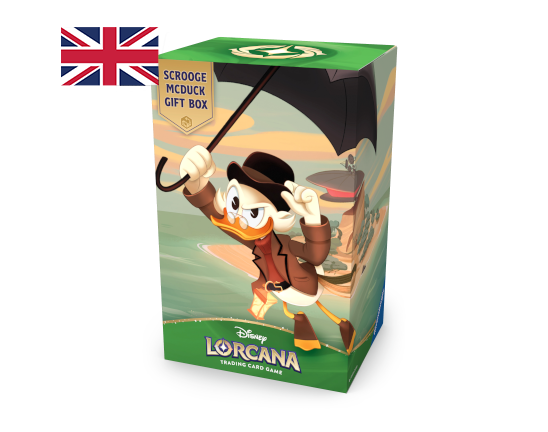 - CONTENUTO: 1 carta promo Glimmer Foil "Scrooge McDuck - S.H.U.S.H Agent", 5 Booster casuali con 12 carte di Lorcana in ogni busta, 1 box porta carte "Scrooge" che può contenere fino a 250 carte in sleave, 3 divisori in plastica.